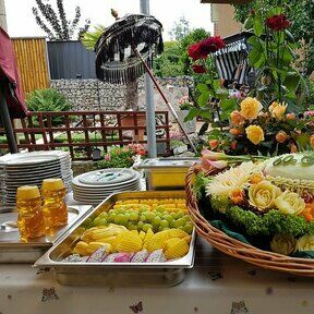 Vom Montag- bis Samstagabend zwischen 17:00 bis 21:30 Uhr servieren wir Ihnen in unserem Restaurant unsere thailändischen Spezialitäten à la carte zu moderaten Preisen. Auch am Abend bieten wir alle unsere Speisen als Take-away an.